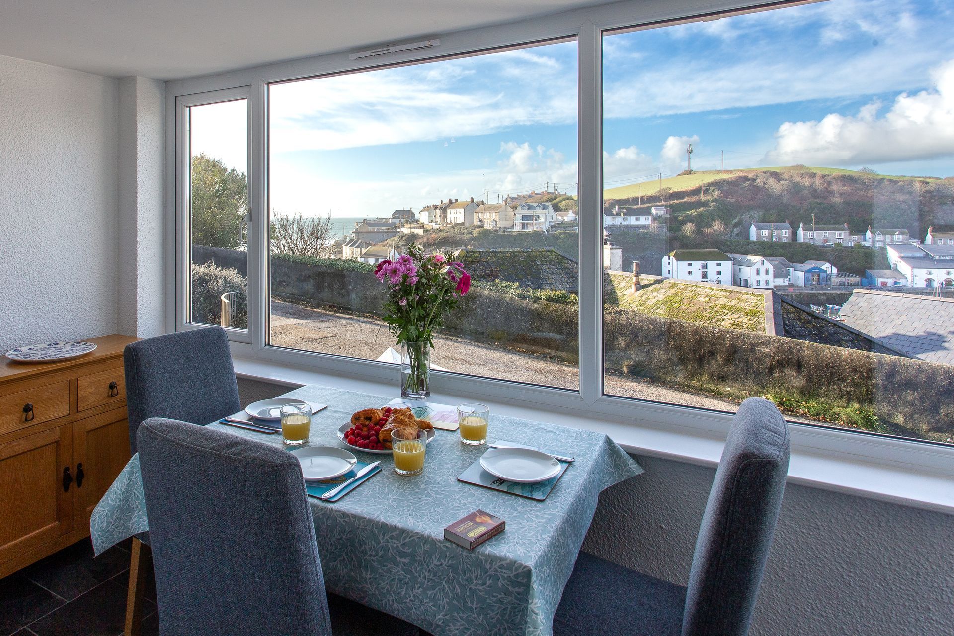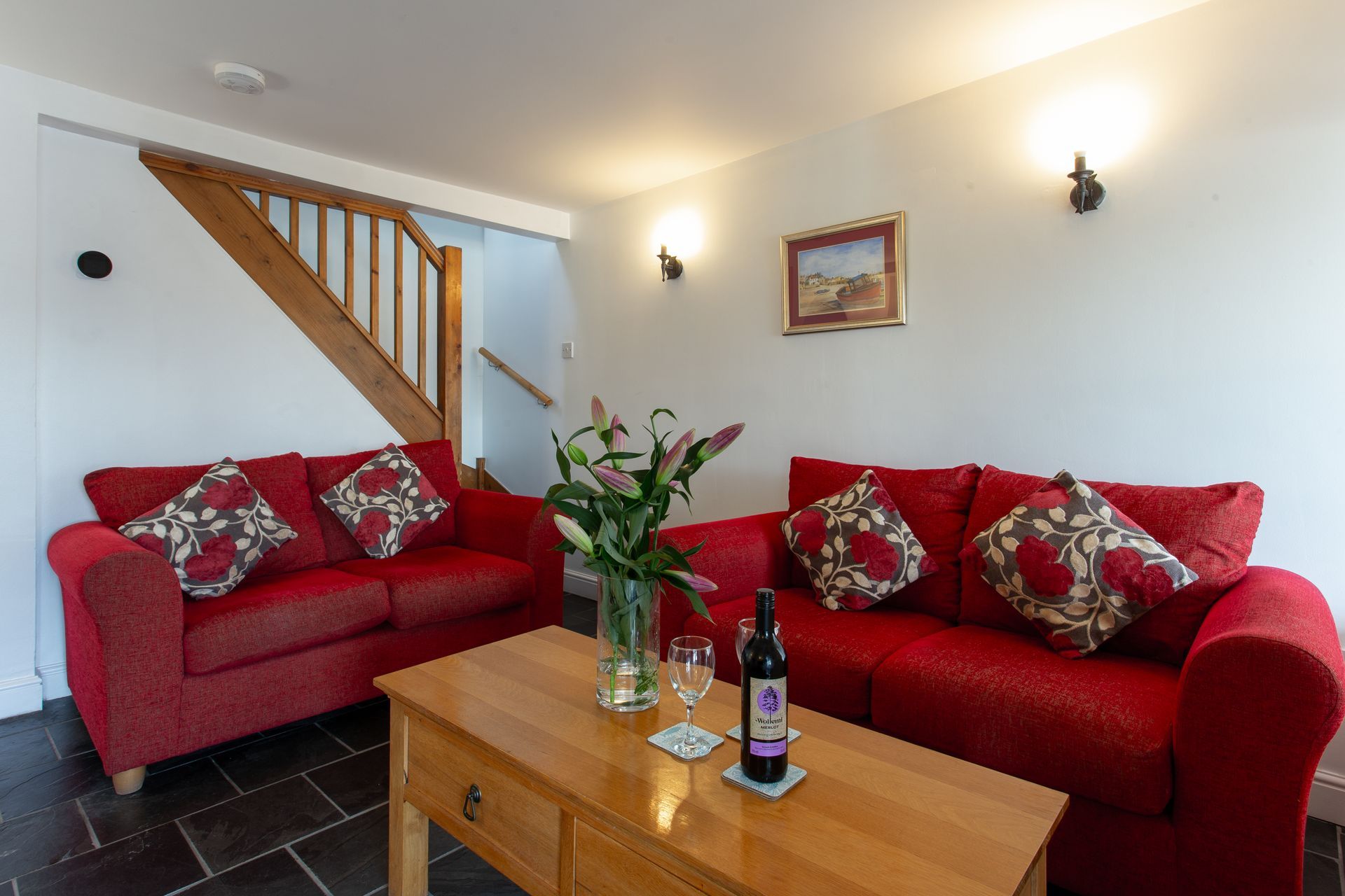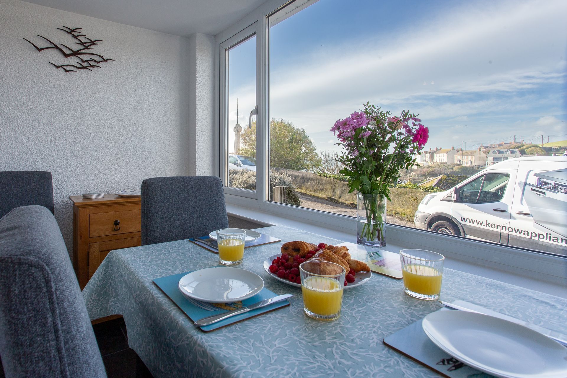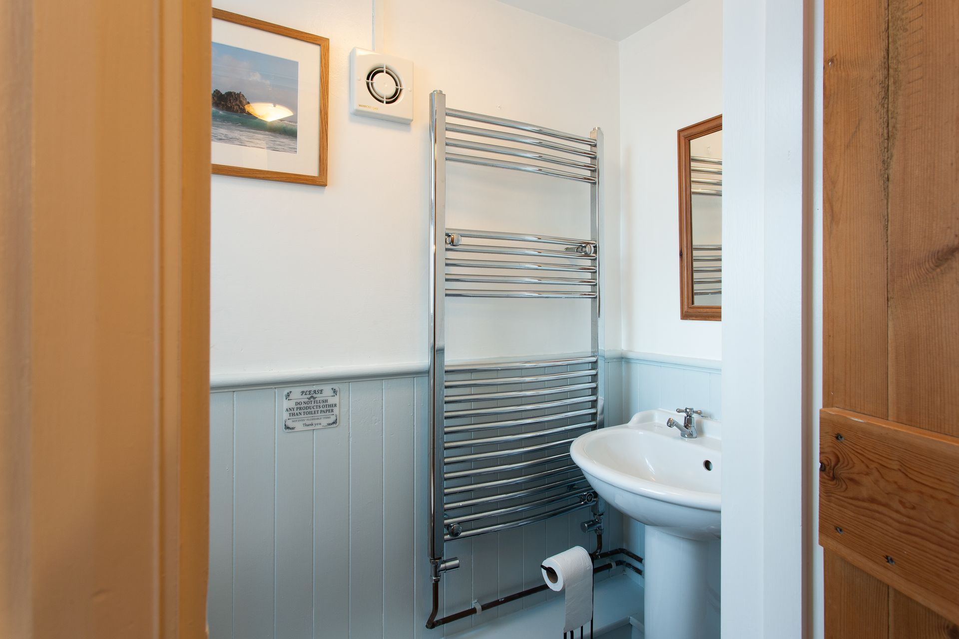 Entrance is via the conservatory, looking out over the harbour and leading into the lounge with log burner, smart TV, ample seating and leads through to the kitchen with dining table, oven and hob, dishwasher, washing machine/dryer, microwave, coffee machine and well equipped cupboards/drawers. At the rear of the kitchen is the ground floor wc with heated towel rail and sink.